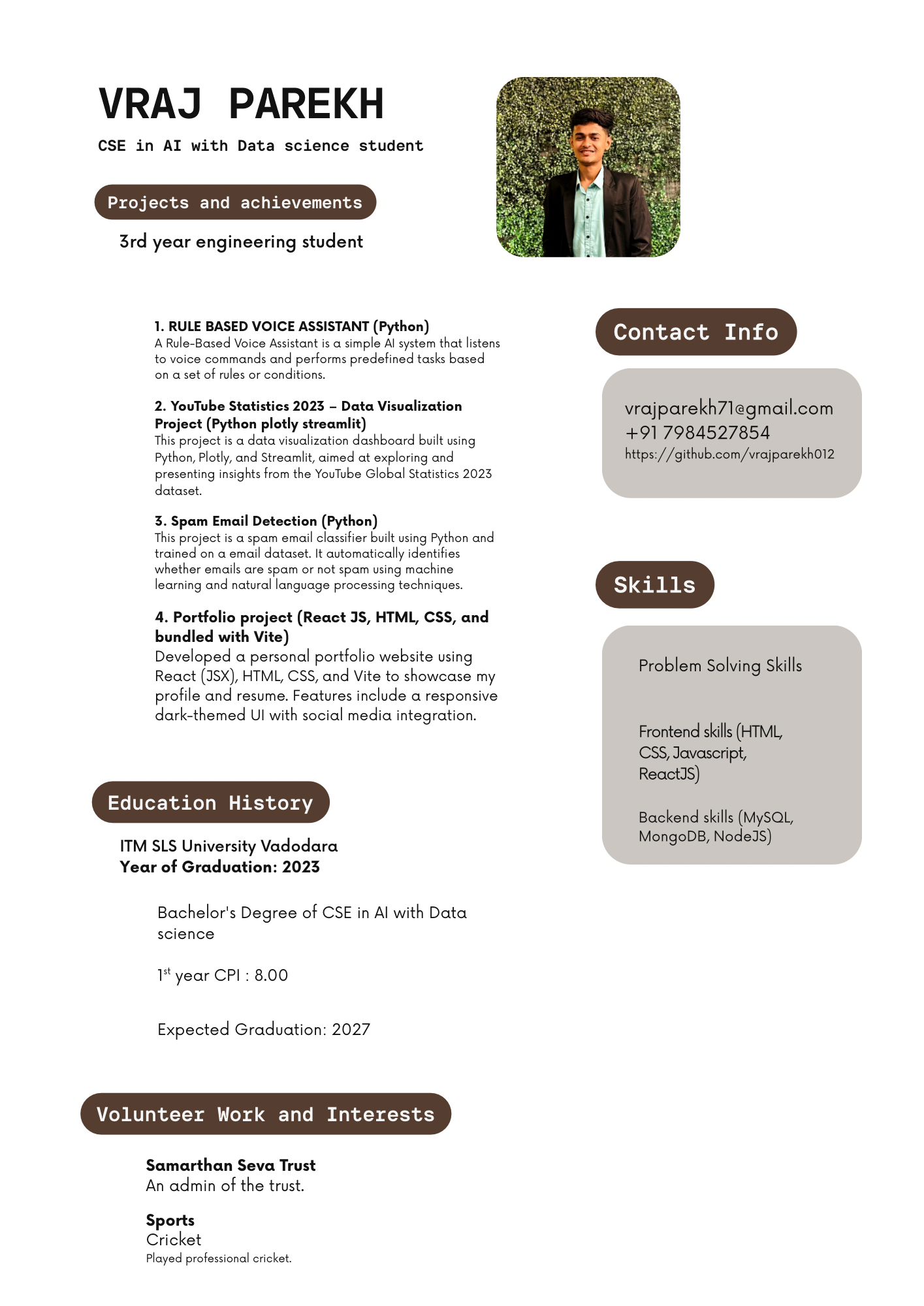 Hi, I'am Vraj Parekh